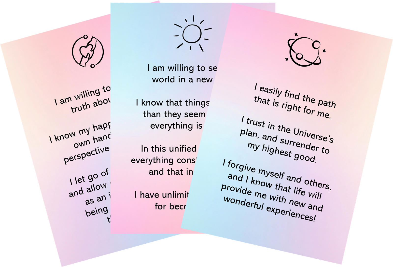 Sign up for Faith’s newsletter and receive three beautiful affirmation cards (the same affirmations that begin the three parts of her book), either as digital downloads or pinted cards mailed to you (optional). By signing up, you’ll also receive her latest news and updates and helpful guidance on accepting life unconditionally while creating your best life from within.